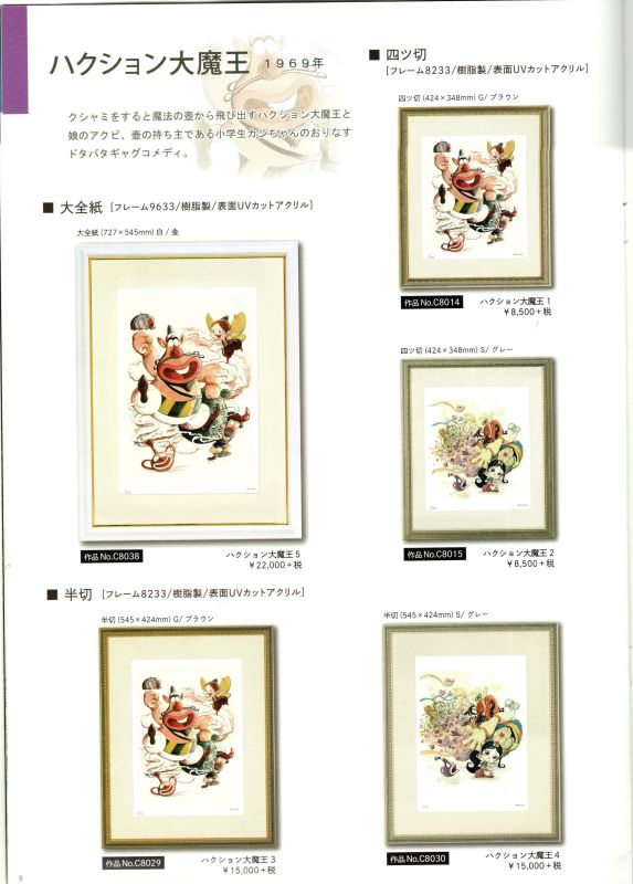 「タツノコプロ アニメ作品額装品」 株式会社タツノコプロ監修のもと、制作されたジークレー版画の正規品です。高品質のジークレー印刷技術にて300枚限定で制作されています。 科学忍者隊ガッチャマン、ヤッターマン、昆虫物語みなしごハッチ、ハクション大魔王、マッハGoGoGo、などタツノコプロの代表作全10作品。 ・300角(300×300mm)¥7.700(税込) ・四ッ切(424×348mm)¥9.350(税込) ・半切(545×424mm)¥16.500 ・大全紙(727×545mm)¥24.200(税込) 作品によりサイズは異なりますが、価格は全て同一価格です。 取り寄せ商品(1枚から取り寄せ可能) #岡崎市彩雲堂 #ギャラリー彩雲堂 #岡崎市 #岡崎市康生 #岡崎市画材 #岡崎市画廊 #岡崎市絵画教室 #岡崎市額縁 ![]() ![]() ![]() ![]() ![]() ![]() ![]() ![]() ![]() ![]() ![]() ![]() 今週のギャラリーもご覧下さい(左上のリンクより) 岡崎商業高校さんの3年生の授業で「情報発信をビジネスにつなげよう!」という課題授業研究にて当店のPR動画を作っていただきました。