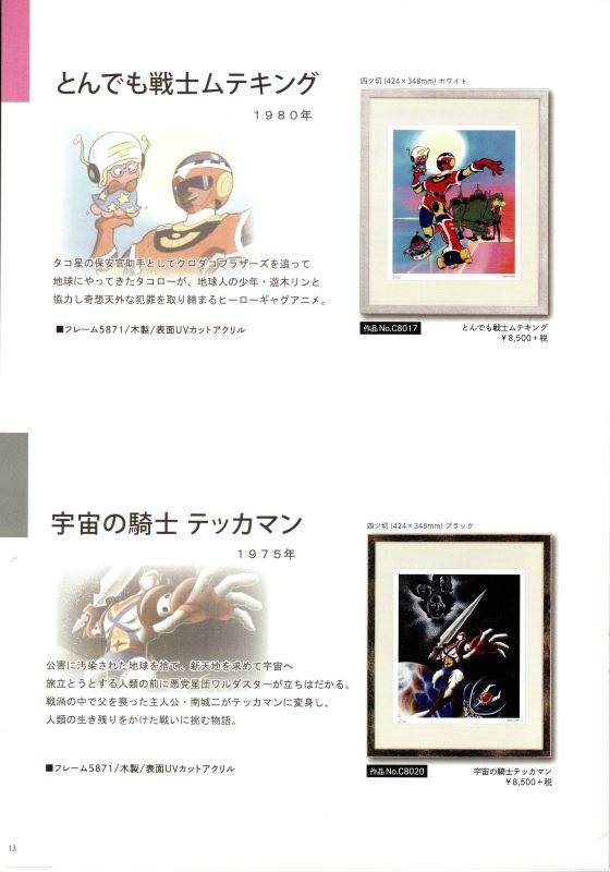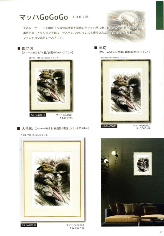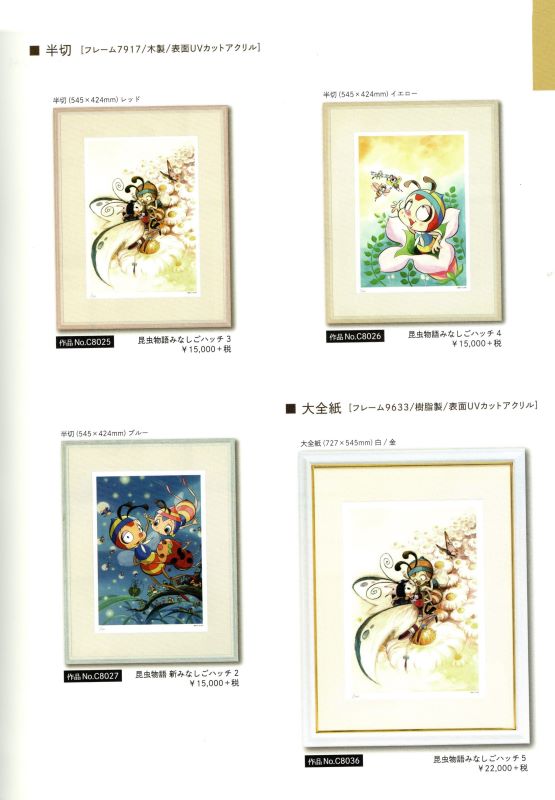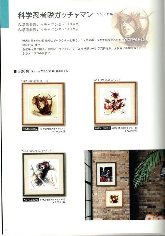 「タツノコプロ アニメ作品額装品」 株式会社タツノコプロ監修のもと、制作されたジークレー版画の正規品です。高品質のジークレー印刷技術にて300枚限定で制作されています。 科学忍者隊ガッチャマン、ヤッターマン、昆虫物語みなしごハッチ、ハクション大魔王、マッハGoGoGo、などタツノコプロの代表作全10作品。 ・300角(300×300mm)¥7.700(税込) ・四ッ切(424×348mm)¥9.350(税込) ・半切(545×424mm)¥16.500 ・大全紙(727×545mm)¥24.200(税込) 作品によりサイズは異なりますが、価格は全て同一価格です。 取り寄せ商品(1枚から取り寄せ可能) #岡崎市彩雲堂 #ギャラリー彩雲堂 #岡崎市 #岡崎市康生 #岡崎市画材 #岡崎市画廊 #岡崎市絵画教室 #岡崎市額縁 ![]() ![]() ![]() ![]() ![]() ![]() ![]() ![]() ![]() ![]() ![]() ![]() 今週のギャラリーもご覧下さい(左上のリンクより) 岡崎商業高校さんの3年生の授業で「情報発信をビジネスにつなげよう!」という課題授業研究にて当店のPR動画を作っていただきました。
