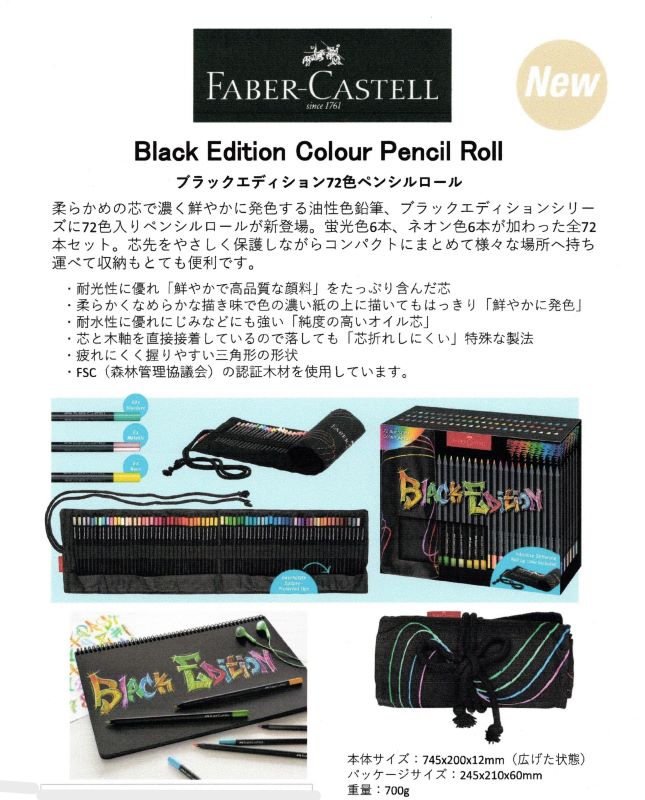 「ファーバーカステル ブラックエディション色鉛筆」 スタイリッシュなデザインで創作にも普段使いにもぴったりな誰でも気軽に楽しめるカジュアルな油性色鉛筆です。全100色(単品販売はありません) ・耐光性に優れ、「鮮やかな高品質な顔料」をたっぷり含んだ芯 ・柔らかく滑らかな描き味で色の濃い紙の上に描いてもはっきり「鮮やかに発色」 ・耐水性に優れ、にじみなどにも強い「純度の高いオイル芯」 ・芯と木軸を直接接着しているので落としても「芯折れしにくい」特殊な製法 ・疲れにくく、握りやすい三角形の形状 ・12色セット¥1.980 ・24色セット¥3.960 ・36色セット¥5.940 ・72色セット¥13.200 ・100色セット¥16.500(金額は全て税込価格) #岡崎市彩雲堂 #ギャラリー彩雲堂 #岡崎市 #岡崎市康生 #岡崎市画材 #岡崎市画廊 #岡崎市絵画教室 #岡崎市額縁 ![]() ![]() 今週のギャラリーもご覧下さい(左上のリンクより) 岡崎商業高校さんの3年生の授業で「情報発信をビジネスにつなげよう!」という課題授業研究にて当店のPR動画を作っていただきました。