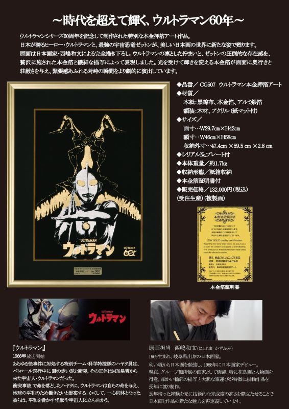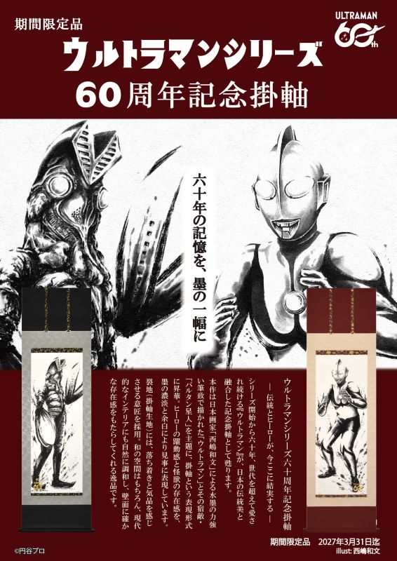 「ウルトラマンシリーズ 60周年記念掛軸 発売開始!」 ウルトラマン60周年記念といたしまして、掛軸・額装・ミニ軸の発売を開始します。期間限定品となっていますので、お早目にご注文をお願いします。 ・ウルトラマン/バルタン星人 尺五立掛軸 シリーズ開始から60年、世代を超えて愛され続ける「ウルトラマン」が日本の伝統美と融合した記念掛軸として甦ります。 本作は日本画家「西嶋和文」による水墨の力強い筆到で描かれた「ウルトラマン」とその宿敵「バルタン星人」を主軸に、掛軸という表現形式に昇華。ヒーローの躍動感と怪獣の存在感を墨の濃淡と余白により見事に表現しています。掛軸の生地には、落ち着きと気品を感じさせる意匠を採用。和の空間はもちろん、現代的なインテリアにも自然に調和し、壁面に確かな存在感をもたらしてくれる逸品です。各¥88.000(税込) ・ウルトラマン/ゼットン 本金押箔アート額装 日本が誇るヒーロー・ウルトラマンと、最強の宇宙恐竜ゼットンが、美しい日本画の世界に新たな姿で甦ります。原画は日本画家・西嶋和文による完全描き下ろし。ウルトラマンの凛とした佇まいと、ゼットンの圧倒的な存在感を贅沢に施された本金箔と繊細な描写によって表現しました。光を受けて輝きを変える本金箔が画面に奥行きと荘厳さを与え、緊張感あふれる対峙の瞬間をより劇的に演出しています。¥132.000(税込) ・ウルトラマン 怪獣ミニ掛軸シリーズ 高精細美術印刷でバルタン星人、レッドキング、ゼットン、ピグモン、ゴモラ、ザラブ星人の6種類がコンパクトなミニ軸になって登場。サイズは40㎝×14㎝(軸先17㎝)。各¥4.950(税込) #岡崎市彩雲堂 #ギャラリー彩雲堂 #岡崎市 #岡崎市康生 #岡崎市画材 #岡崎市画廊 #岡崎市絵画教室 #岡崎市額縁 ![]() ![]() ![]() ![]() ![]() ![]() 今週のギャラリーもご覧下さい(左上のリンクより) 岡崎商業高校さんの3年生の授業で「情報発信をビジネスにつなげよう!」という課題授業研究にて当店のPR動画を作っていただきました。